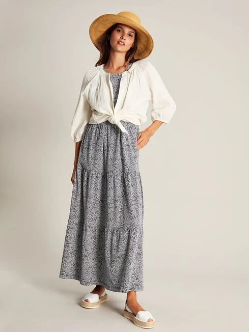 Maxi dresses make summer styling a breeze. Our Jayne dress is sleeveless making it perfect for warm days. It has a tiered skirt, a round neckline and rather handily, pockets in the side seams! It’s finished with a hand-drawn print that is oh-so-lovely.