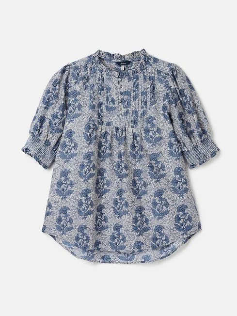 Make room for this beautiful blouse in your wardrobe. The short sleeves and hand-drawn print will pair perfectly with the sunshine, while the frilled neckline adds a delicate touch. It has pleated detailing to the front, elasticated cuffs, a button placket and flattering curved neckline. Pair with anything from skirts, shorts, jeans and more.