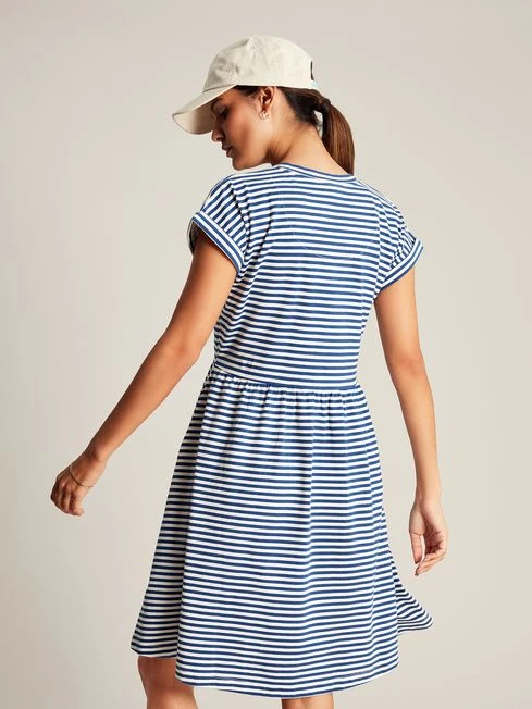 Dresses are a summer essential and this one is perfect for the return of warmer weather. It’s crafted from soft jersey, and has a flattering V-Neck and short sleeves with turn-up cuffs. it’s above the knee and makes a great everyday style.
