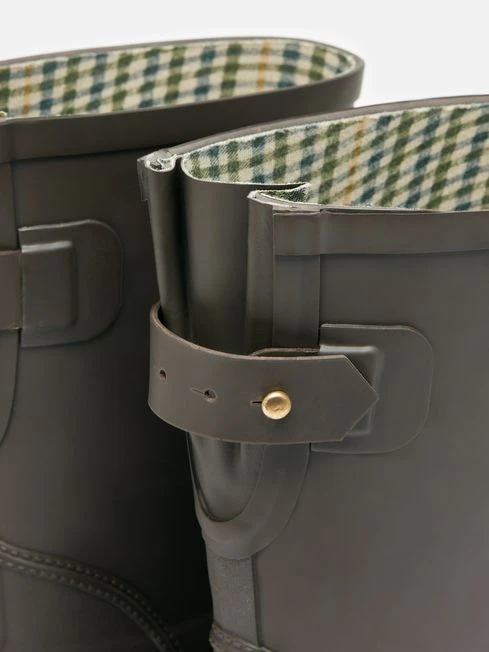 From walking the country show circuit to walking the dogs on a drizzly afternoon, our Wistow mid-height wellies will keep you dry, protected and looking pretty snappy too. They have an adjustable elastic gusset for the perfect fit on the calf and feature specially-designed water dispersing outsoles for superior grip. As a touch of heritage-inspired style we’ve added a traditional check print to the lining, a branded leather badge to the front and a matte textured effect to the heel counter. Natural rubber Mid-height Waterproof Heritage check lining Adjustable back gusset with strap Water dispersing outsoles Removable insole Branded leather badge Matte textured rubber heel counter Covered By Our One Year Welly Guarantee