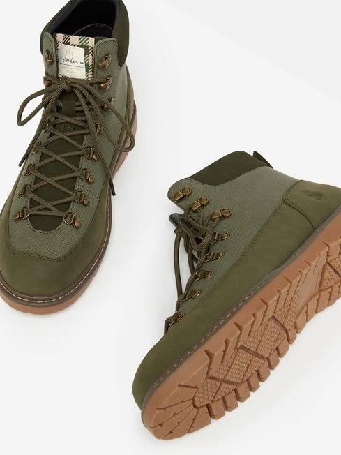 Nothing soothes the soul like a walk in nature, and having these Chester leather hiker-style boots by your door means you’ll always be prepared to get outdoors in style. Designed with comfort and practicality in mind, they have a padded collar, a pull tab for easy on-and-off, and the laces are held with D rings and ski hooks for the perfect fit. The chunky EVA outsole has a grippy tread for those more tricky terrains. As a mark of unmistakable quality, we’ve added a Joules branded ‘Adventure Awaits’ patch to the tongue. Leather Padded collar Pull tab D rings and ski hooks for perfect fit Chunky EVA sole for superior grip Joules branded patch to tongue Joules branded insole Hiker-style – not intended for technical hikes