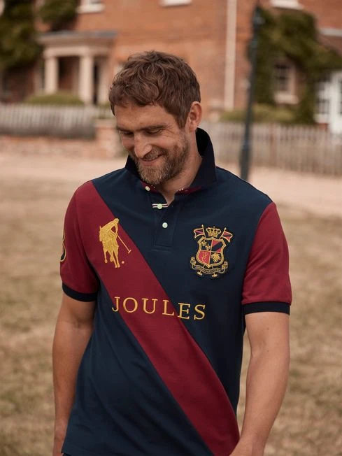 The ultimate in casual dressing, the polo shirt is something every man should have in their wardrobe. Extremely versatile, the lightweight and breathable cotton pique fabric means you can wear it for playing polo or sporting it for the everyday. This one has an embroidered Joules Polo Club badge to the chest along with a player position number ‘3’ to the sleeve. Additional details include the Joules script to the front, a contrasting colour sash and a twill collar stand with polo mallet embroidery. The heritage burgundy and navy colour palette used makes it easy to wear with almost anything. Cotton pique Classic fit Short sleeves Button placket Collar with embroidered twill collar stand| Joules polo club badge and number to the sleeve Contrasting sash to the front with embroidered ‘Joules’ Side vents