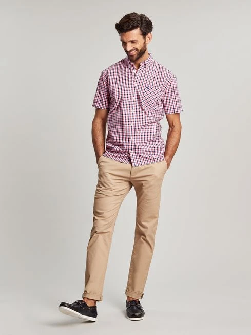 Short sleeve shirts are a summer staple whether it’s for keeping cool (but smart) in the office or wearing unbuttoned over a T-Shirt at the weekend. Our Wilson shirt has a classic fit, is crafted from a lightweight woven fabric, and has a full button-down fastening and a single patch pocket to the chest. It comes in a traditional gingham that will pair perfectly with anything from chinos to jeans.